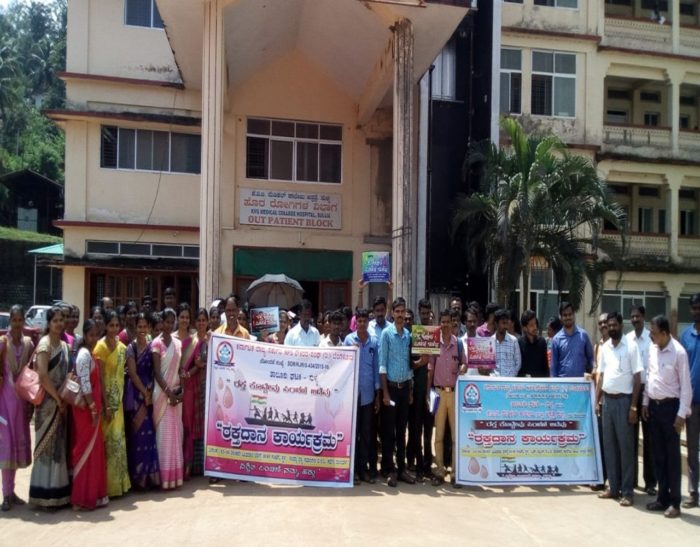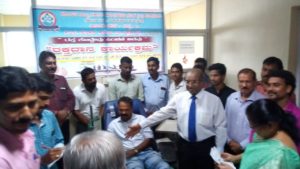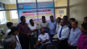 Blood Donation Camp conducted in Blood Bank KVG Medical College Hospital on 03.10.2018, In order to cancel New Pension Scheme and apply old pension scheme – a innovative fight “ Raktha Kottevu Pinchani Bidevu” by Karnataka state NPS employees association & Taluk Unit Sullia.