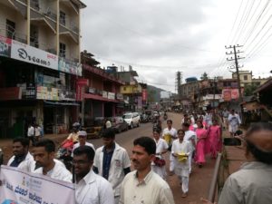 Later an awareness rally went around the town in two groups consisting of medical and nursing students, ASHAs, ANMs and health workers & publics. The rally concluded at the KVG circle where refreshments were provided to all the participants.