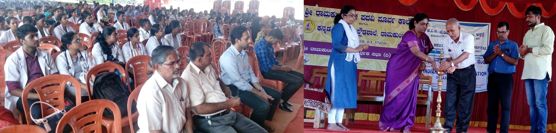 KVG Medical College & Hospital conducted General Health Camp on 15th Sep 2019 at Ramkunjeshwara PU College Ramkunja . Camp started with inaugural ceremony function by lighting lamp by Mr. Ishwara Gowda Pajjadkka, correspondent Sri Bharathi Primary School Alankar. In inaugural speech he told about importance and need of the health camp. In the inaugural function Dr. Geeta Doppa Prof & HOD OBG Dept KVGMCH told about importance services & facility available in our KVGMCH and also about the Women health.