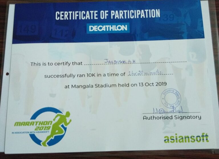 Our Administrator Mr.Jagadish A.H participated in this programme by running 10K run and receieved the Finisher Medal.
