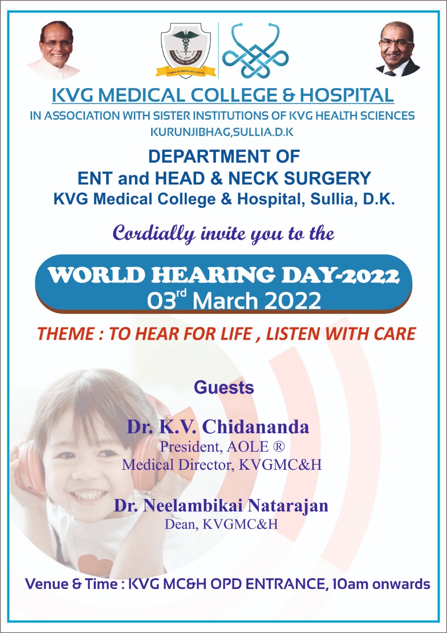 World Hearing Day 2022 was celebrated and organized by KVGMC & H, Department of ENT in association with sister health institutions on 03.03.2022