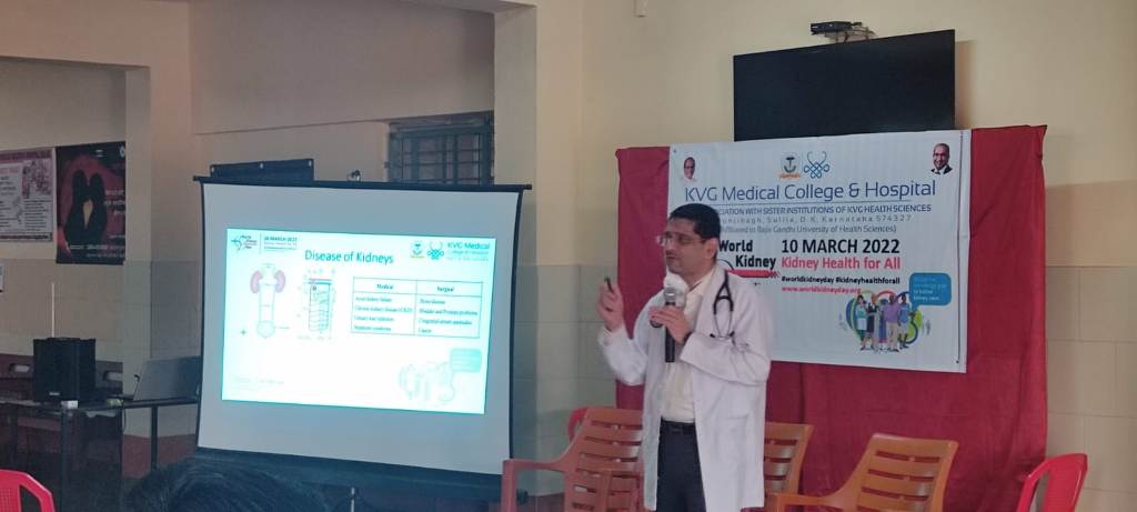 World Kidney day was organized by Department of General Medicine. Talk been delivered by C Ramachandra Bhat, Professor and HOD of General Medicine – KVGMC & H.