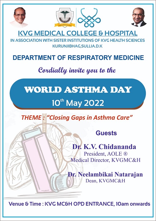 The Department of Respiratory Medicine Kvgmc & h, organised and conducted World Asthma Day programme on 10th May 2022. Free pulmonary Function Test (PFT)/Spirometry Test was conducted.