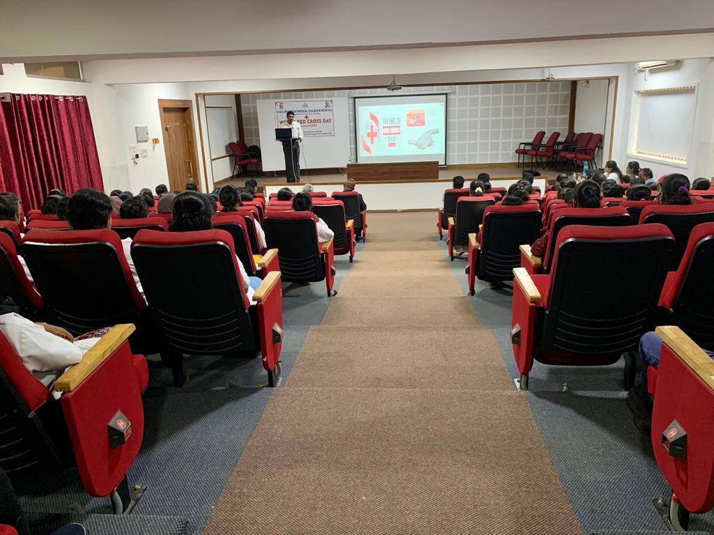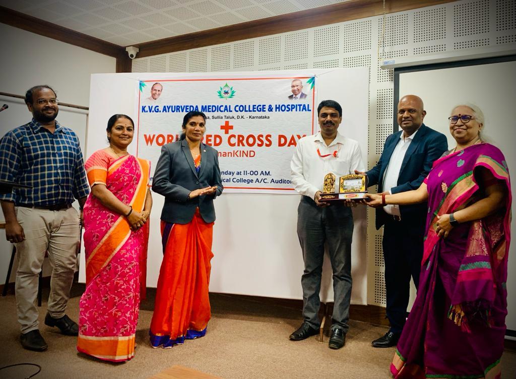 World Red Cross day was conducted by KVG Ayurvedha Medical college & Hospital in collaboration with KVG Medical college & Hospital. Principal Dr. Leeladhar D.V, Dean Dr. Neelambikai Natarajan – Kvgmc & h, Dr. Anuradha Kurunji, Programme Officer, Youth Red cross wing NMC, Sullia on 09.05.2022 with the theme # BeHumanKIND