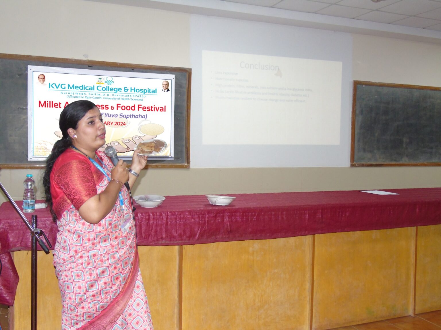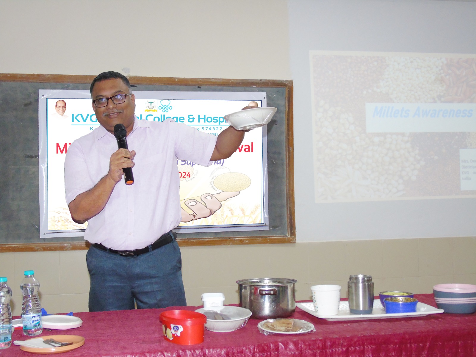 Millet Awareness and Food Festival Program was organised in KVG Medical College and Hospital on 16 Jan 2024. The event, organised on the college premises, was aimed at creating awareness among the people, about leading a healthy lifestyle.