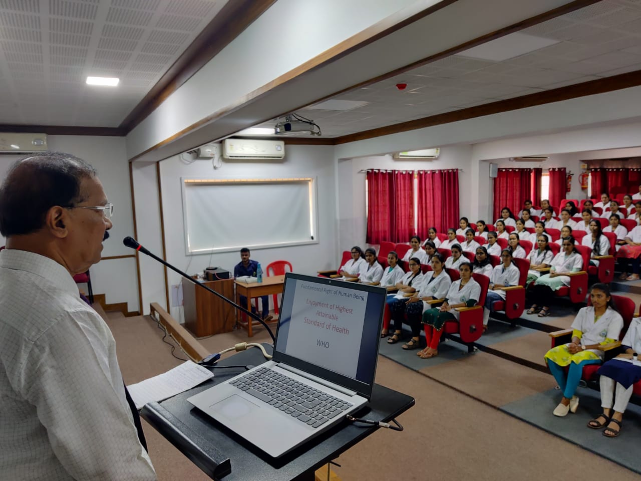 A talk was given by Jagadish A H, Administrator to the students of KVG Ayurveda Medical College, Sullia, on the topic “Health and Fitness“.