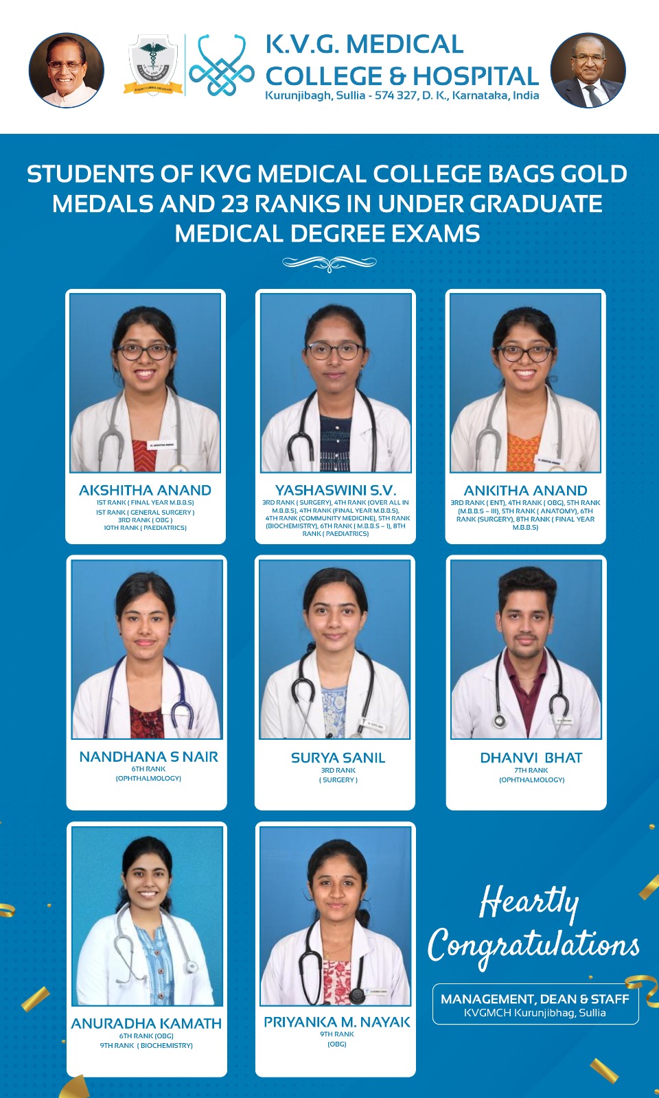 In addition to her administrative roles, Dr. Natarajan has served as an assessor on the Medical Council of India (MCI) panel for over 15 years. She was also an Ex-Senate member of the MGR University and Secretary of the Ethics Committee. Dr. Natarajan has completed an Advanced Course in Medical Education (ACME). Since 2019, she has been serving as the Dean at KVG Medical College and Hospital in Sullia.