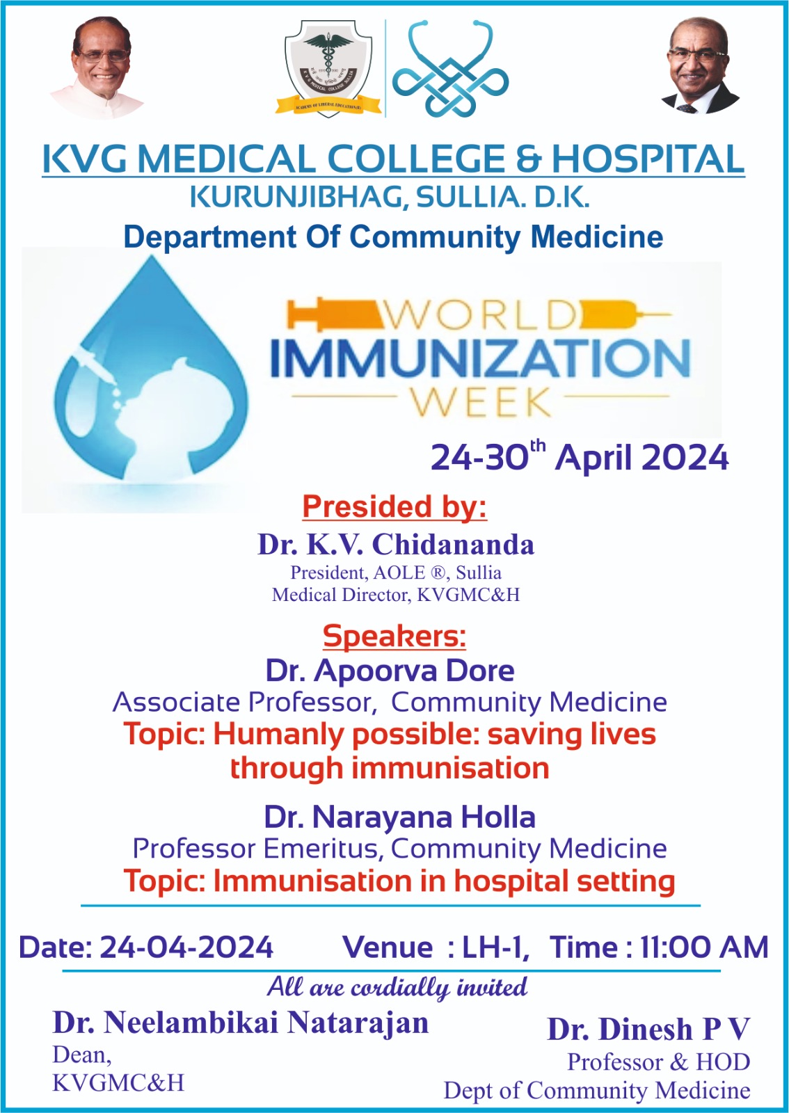 President of KVG Medical College and Hospital Dr. K. V. Chidananda has been selected for the IMA Karnataka State Branch Doctors Day Dr. B.